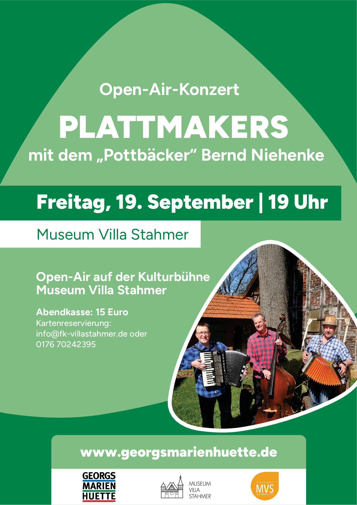 Open-Air-Konzert „Plattmakers“ mit dem „Pottbäcker“ Bernd Niehenke Live auf der Kulturbühne der Villa Stahmer Freitag, 19. September 2025...